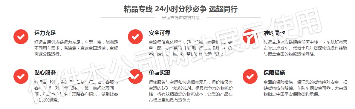 6.物流抵達(dá)超安全:把所有貨物都參保貨物險(xiǎn),造成的貨物損失按100%賠付,全程低風(fēng)險(xiǎn).